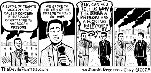 With prisons especially, it is not the interest of private to rehabilitate, but to get people in prison loop. It just cannot work. It is just easy to sell to people because people want prison to be punishment facility.