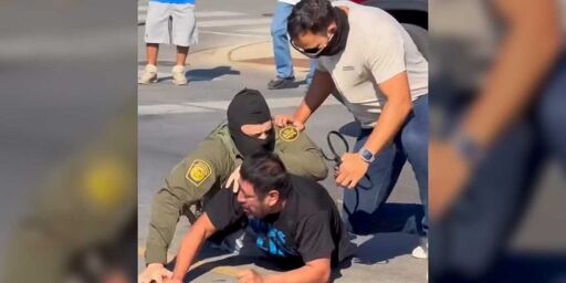 Drivers shouted at the federal agents and blew their horns as onlookers gathered. The struggle went on for several minutes before the agents released the man and fled in an unmarked vehicle.