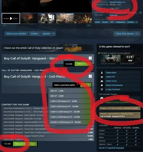 • 60 euros base game: expensive, especially when the game has mixed reviews