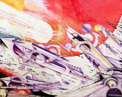 The artwork used as the thumbnail for this post was created for the book cover “R is for Rocket” written by Ray Bradbury a titan among 20th-century American writers, a titan among 20th-century American writers. This piece was one of Ian Miller’s early commissions at the start of his career. He went on to illustrate additional covers for Bradbury and Lovecraft around this period.