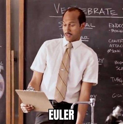 The joke is about how many variations on pronouncing the name “Euler” there are (Ew-leer, Oiler, Yoy-lir, etc), via a key and peel sketch about alternate pronunciations of common names.