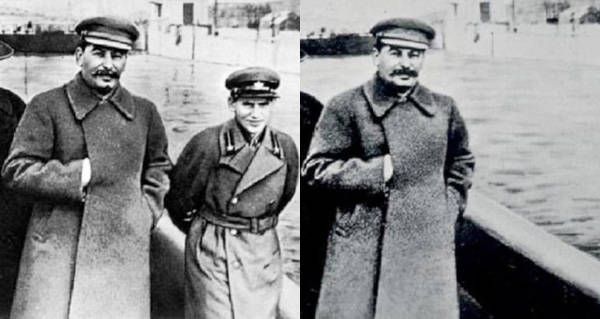 Dystopian fiction: The regime alters photos to make people look happy and smiling, to hide their cruelty.