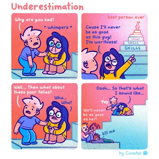 But what if you don’t see anyone worse than you? Huh? What to do when all unworthy are hiding, dooming you to the pain of self-doubt?