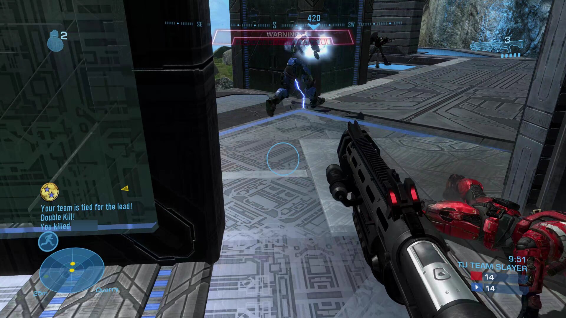 We turned off CTF after that and it was far better. we were pretty evenly matched for most our games. We got a Reach slayer game which we won by about 5 points. I ended up grabbing a shotgun and protecting the sniper though because the enemy team kept making a beeline for ours for some reason.