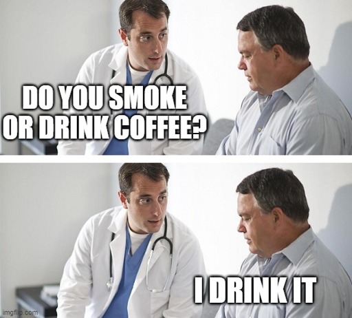 Coffee is not unhealthy. Why would a doctor be asking a patient about coffee consumption? Doctors ask about cigarettes and ALCOHOL.